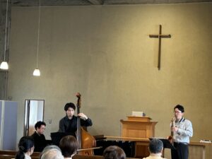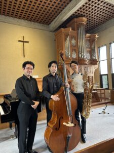 重厚な響きのコントラバス、伸びやかなサックスの音色、優美なピアノのトリオの演奏で、それぞれの楽器の魅力を味わう、素敵なひとときとなりました。